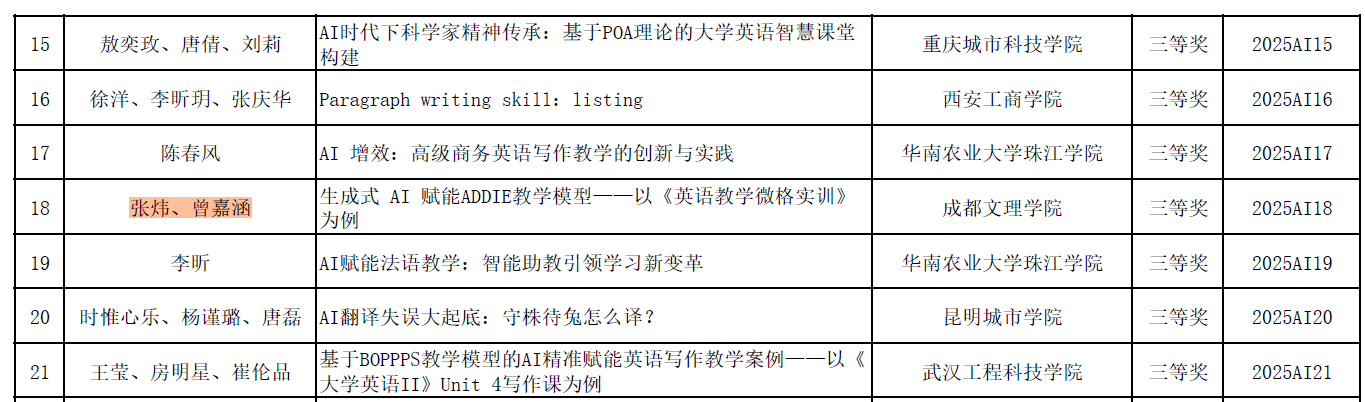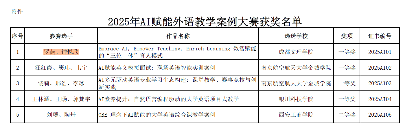 “2025年AI赋能外语教学案例大赛”结果近日揭晓。公司教师团队凭借数智赋能的教学创新设计与扎实深厚的教学功底,在比赛中脱颖而出,斩获佳绩。其中,罗燕老师团队(成员:钟悦欣)以总分第一名的优异成绩,荣获大赛一等奖;张炜老师团队(成员:曾嘉涵)荣获三等奖,yl23455永利集团荣获优秀组织奖。