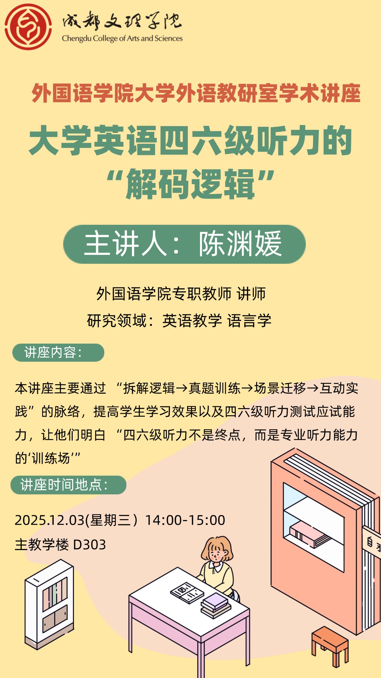 讲座预告:大学英语四六级听力的 “解码逻辑”