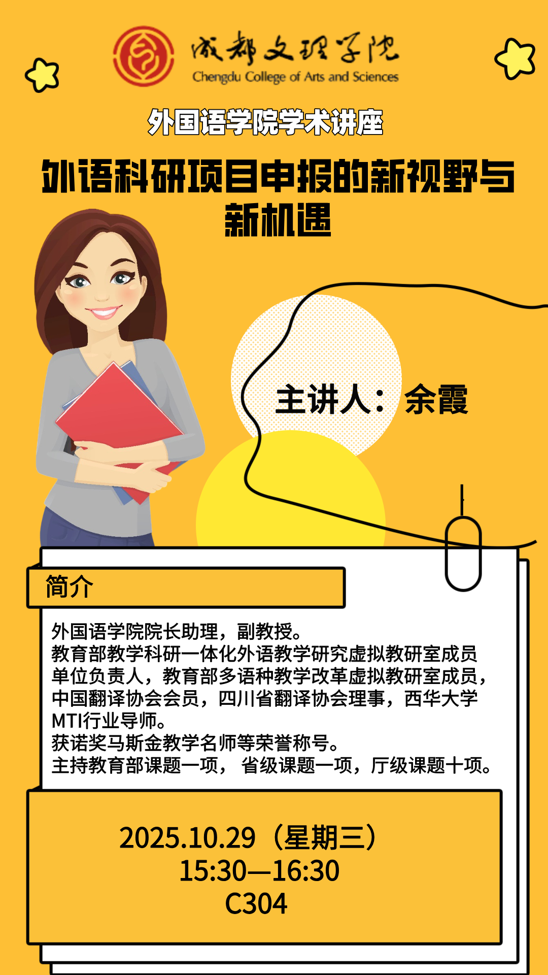 讲座预告:外语科研项目申报的新视野与新机遇