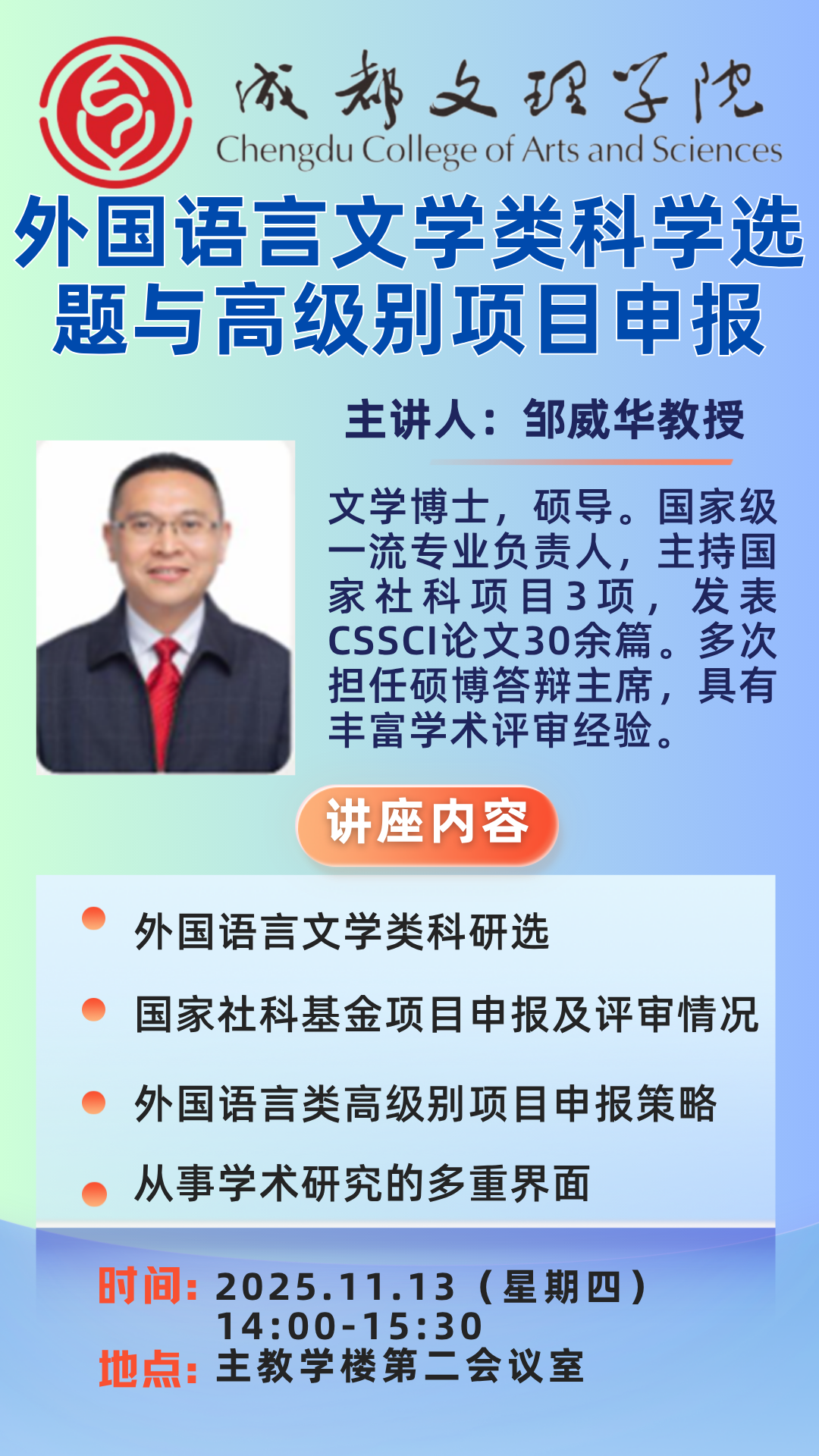 讲座预告:外国语言文学类科学选题与高级别项目申报