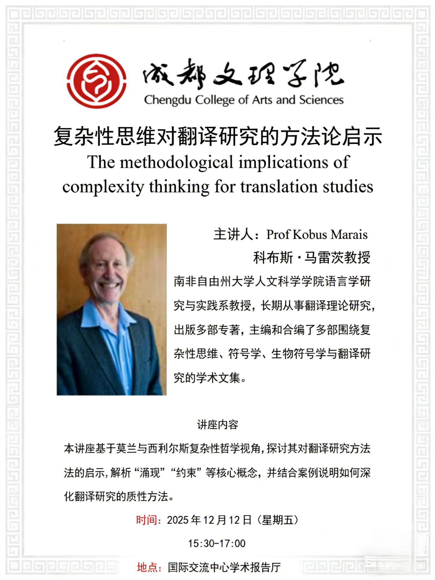讲座预告:复杂性思维对翻译研究的方法论启示