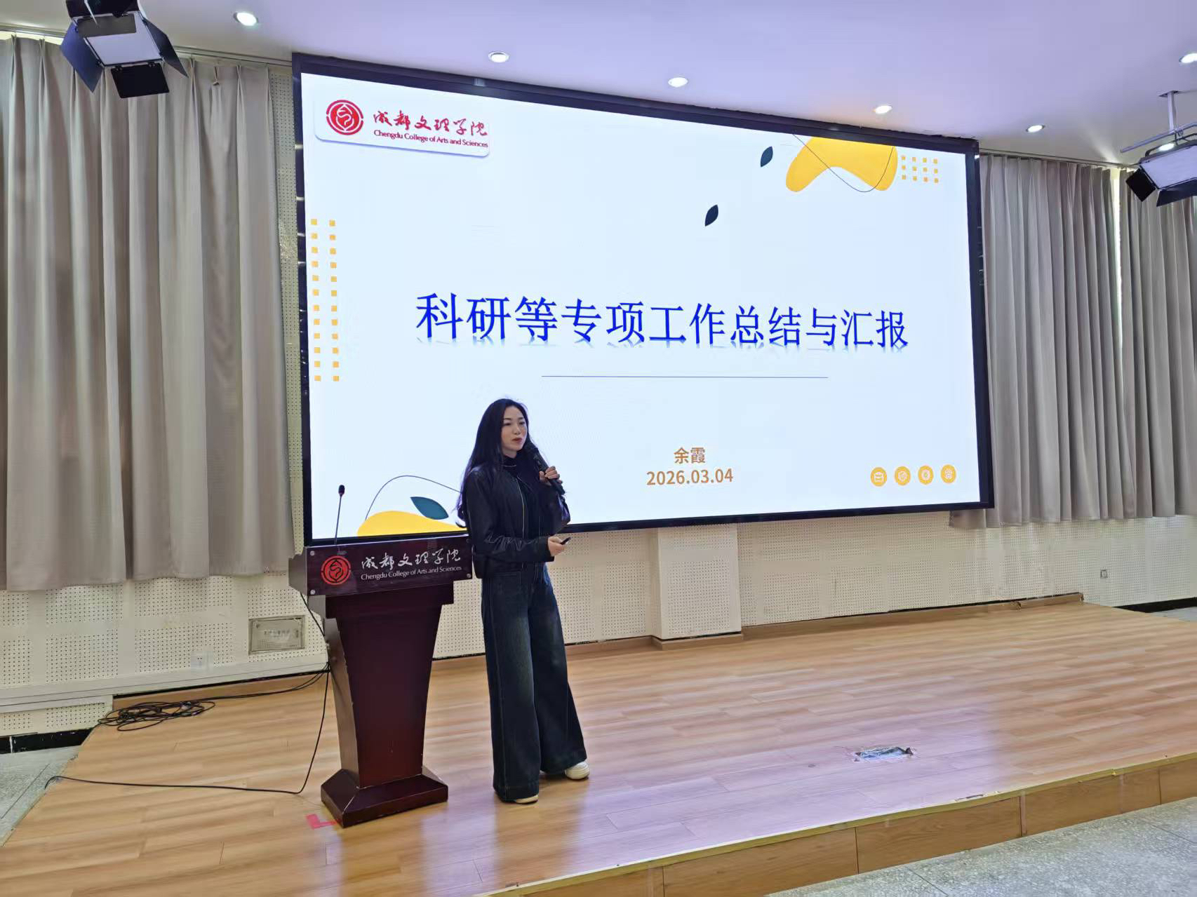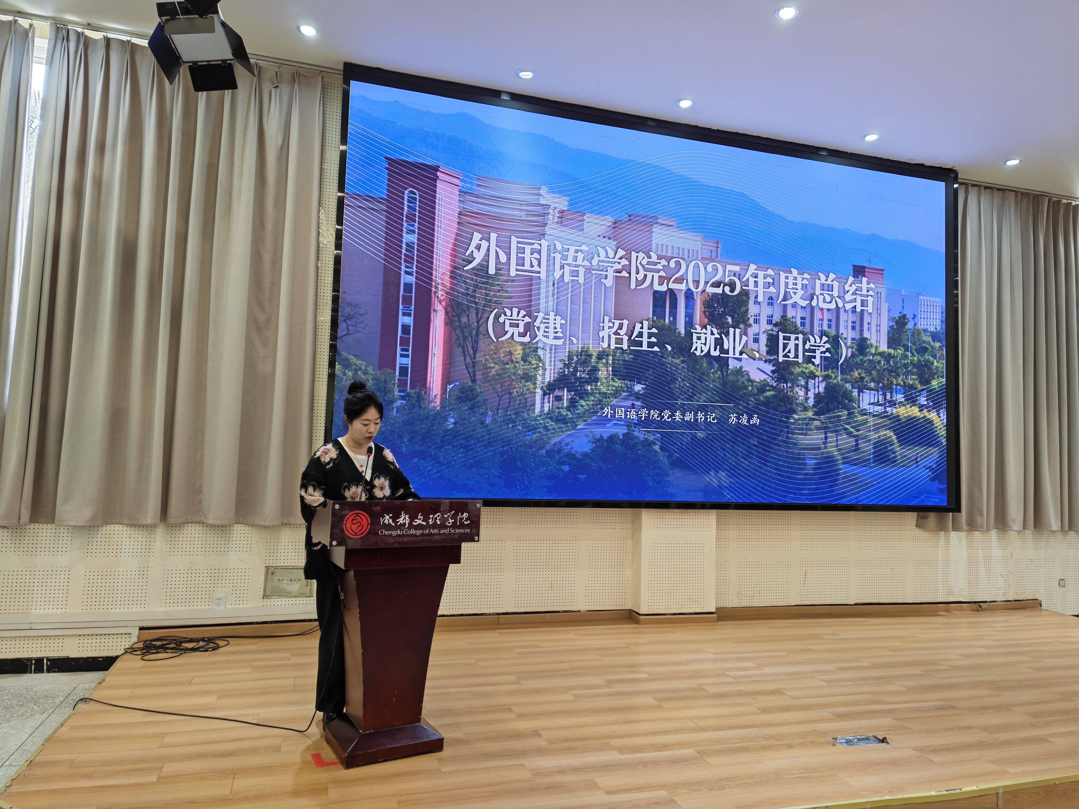 余霞通报了公司过去一年科研成绩及各专项工作情况,鼓励大家持续深耕,多出高水平成果,特别是在著作出版、成果获奖方面争取新的突破。她还介绍了公司举办学术讲座、教师参加专业培训等方面的情况,鼓励教师拓宽国际视野。她通报了师范认证相关工作进展,并部署了下一步工作。最后,她介绍了学业导师制度的推行情况,强调其在提升人才培养质量中的重要作用。