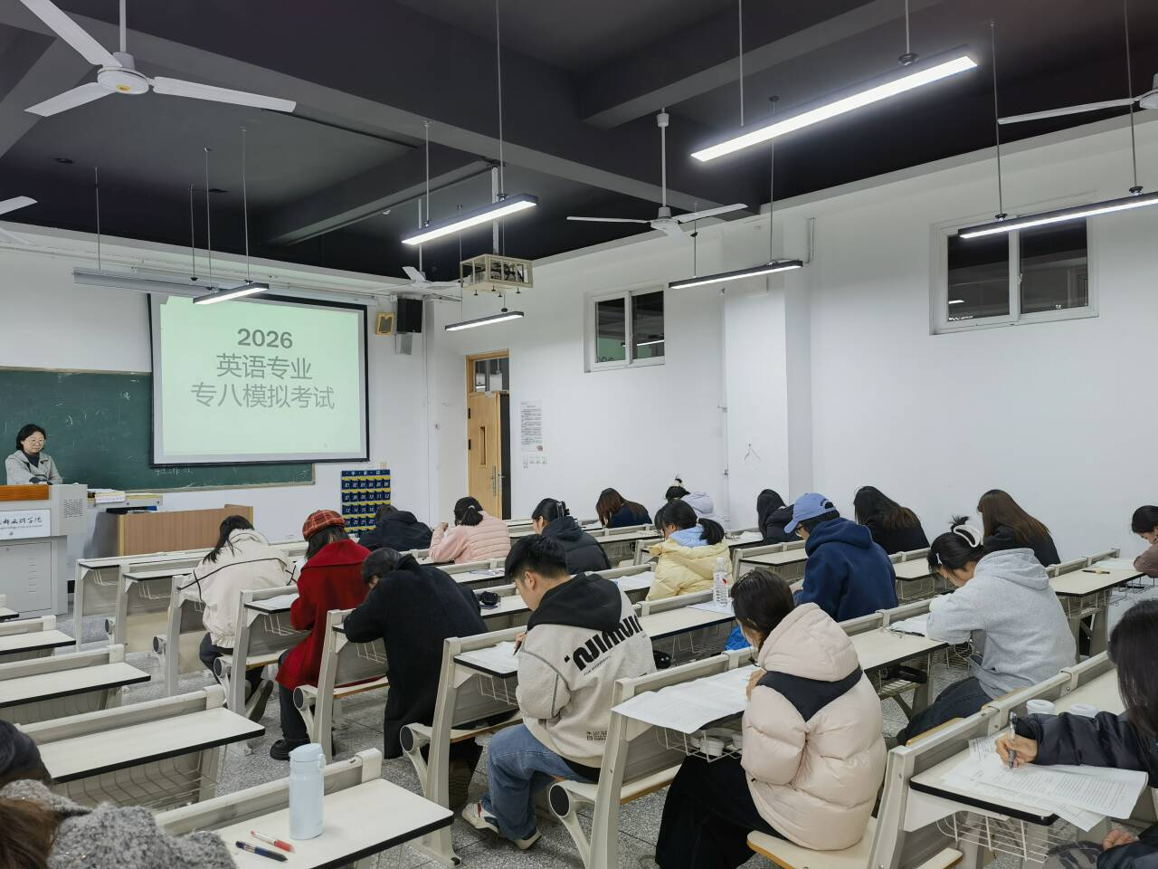 英语专业教研室高度重视此次模考,寒假期间即组织骨干教师开展专题辅导,围绕听力、阅读、翻译、写作等模块进行系统强化训练。考前,教研室统筹命题、场地与监考安排,确保模考规范有序进行。