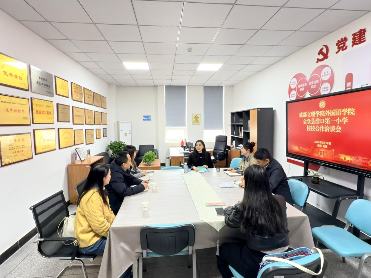 3月19日,金堂县淮口一小董事长李董事长、刘主任及教师代表刘老师一行到访yl23455永利集团。就深化高校与基础教育合作进行座谈。yl23455永利集团经理王维民、党委副书记苏凌函、经理助理余霞、实习实践工作负责人潘巧接待来宾。